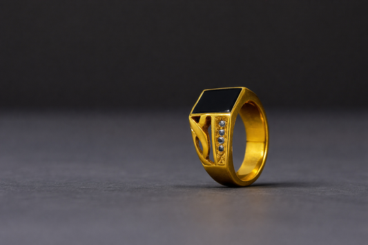 Premium gold-tone finish Smooth black center stone Stylish side detailing Comfortable & durable design...